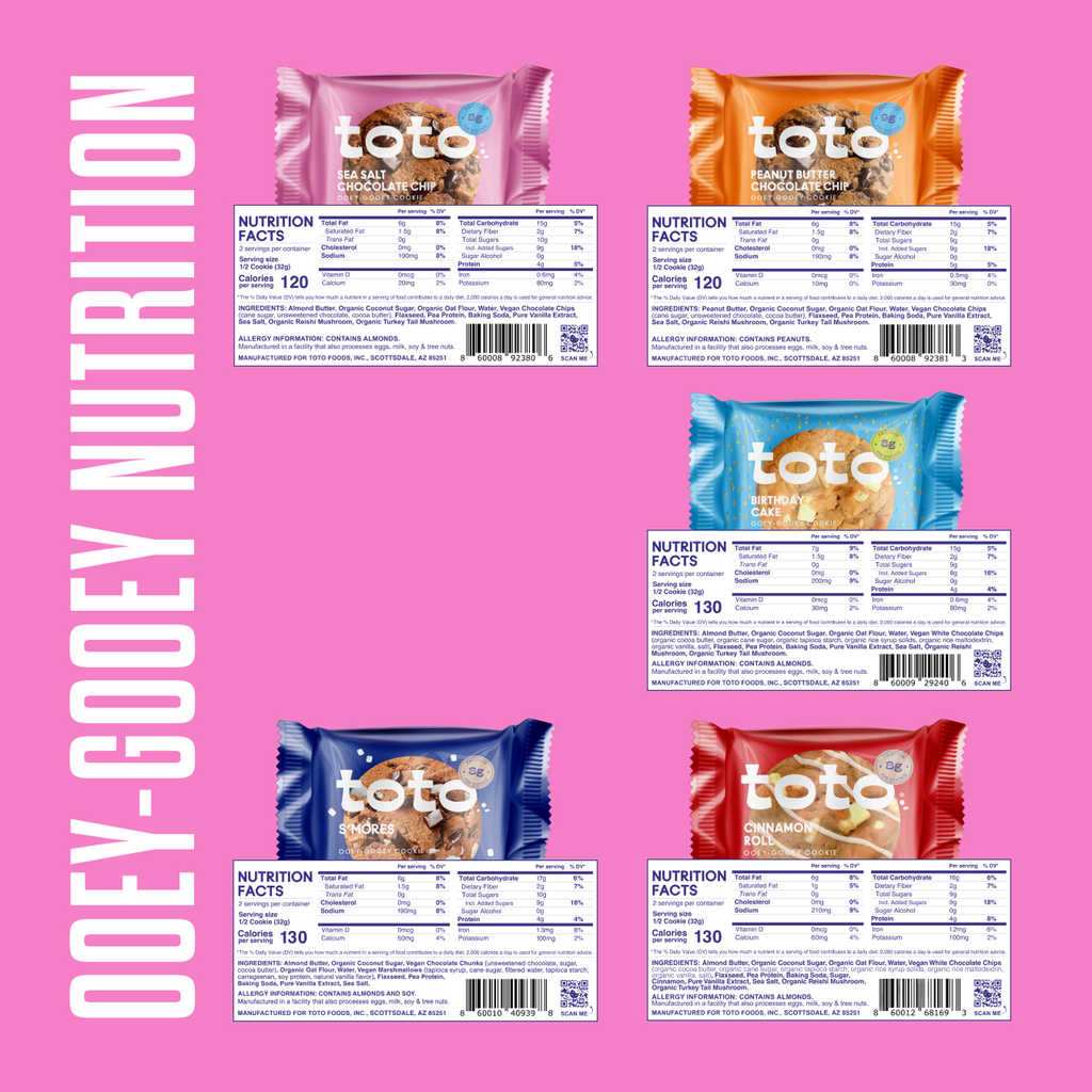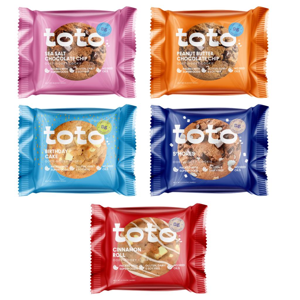 Five 4-packs, one of each flavor: Sea Salt Chocolate Chip, Peanut Butter Chocolate Chip, Birthday Cake, Cinnamon Roll, and S’mores. Made for sharing, sampling, and gathering around the table.